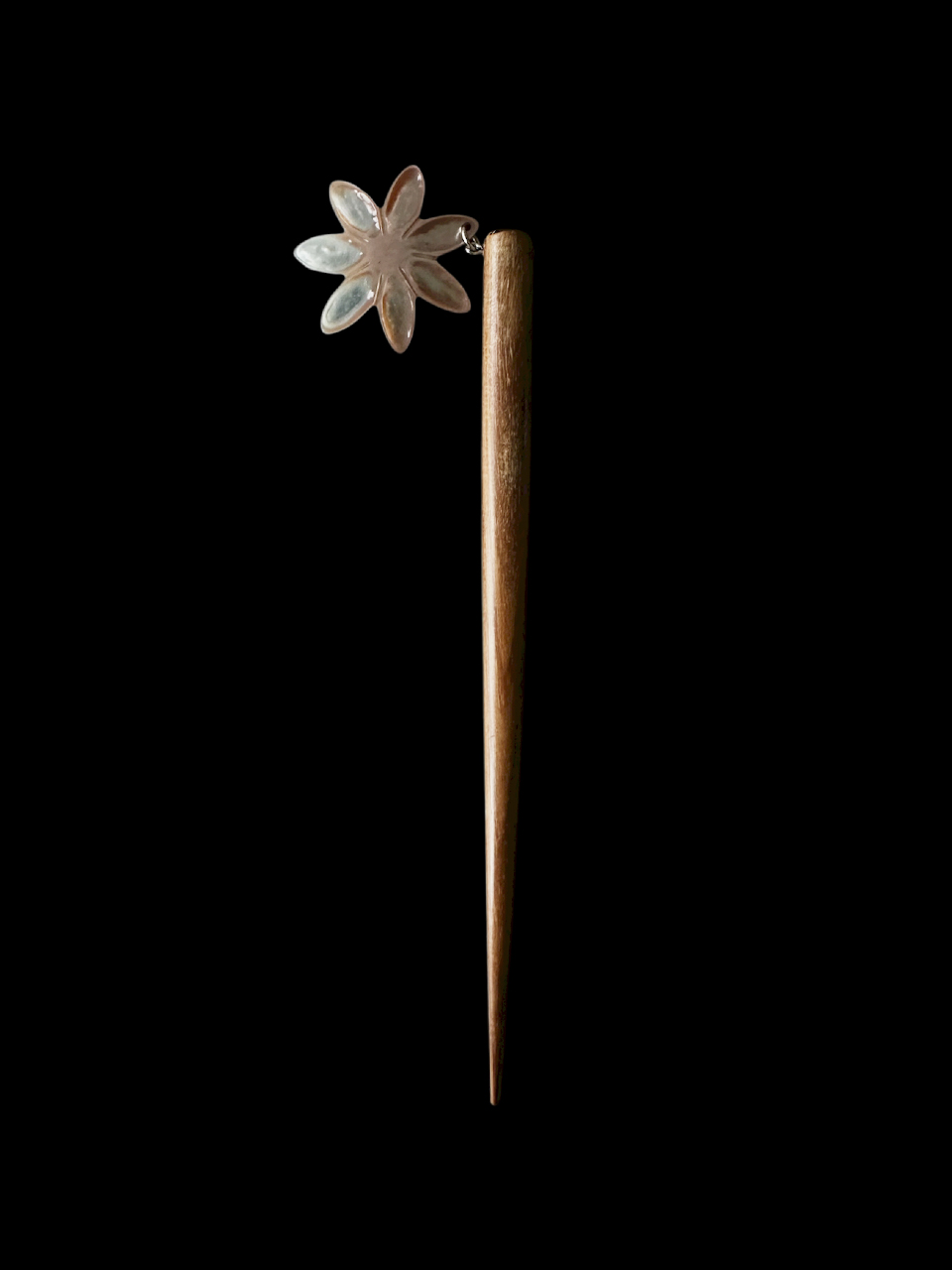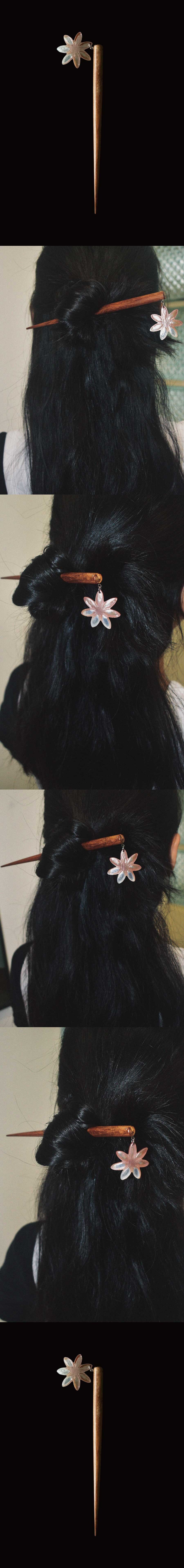 플라워 자개와 우드를 이용하여 제작한 핸드메이드 비녀핀입니다.