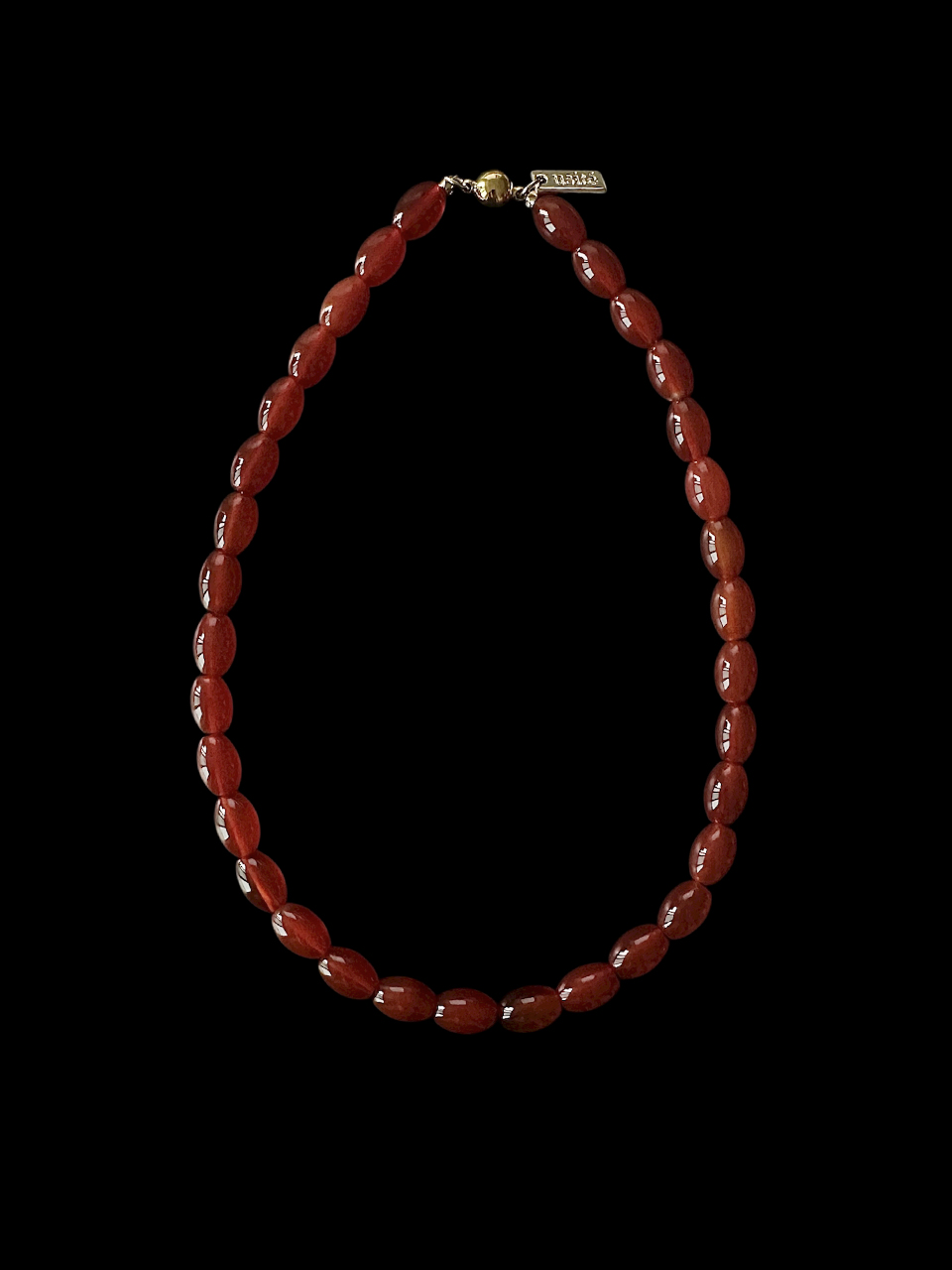 CALM OVAL JADE NECKLACE, BURGUNDY