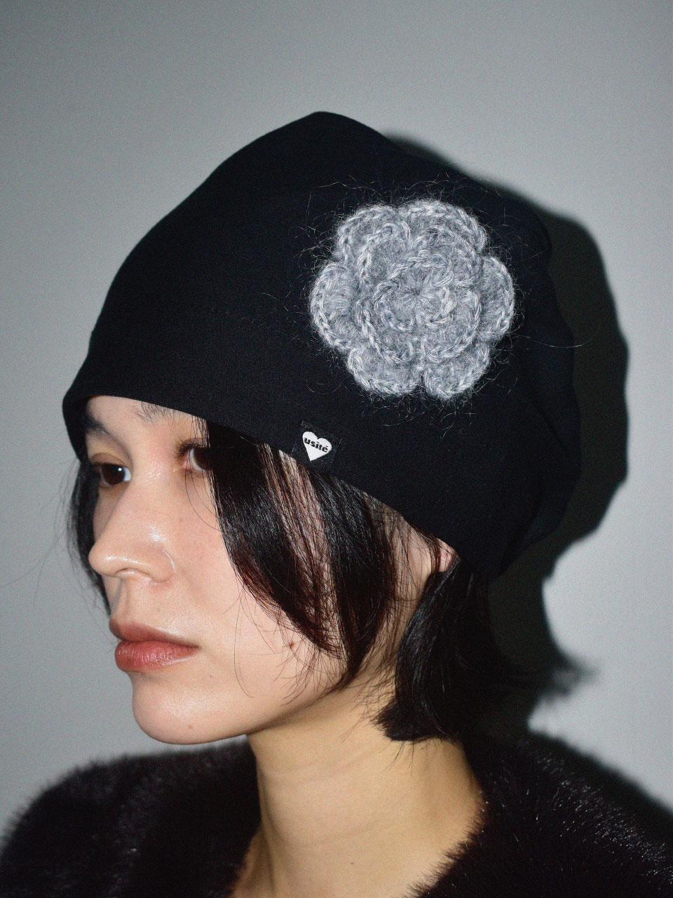 HANDMADE KNIT CORSAGE HAT_BLACK