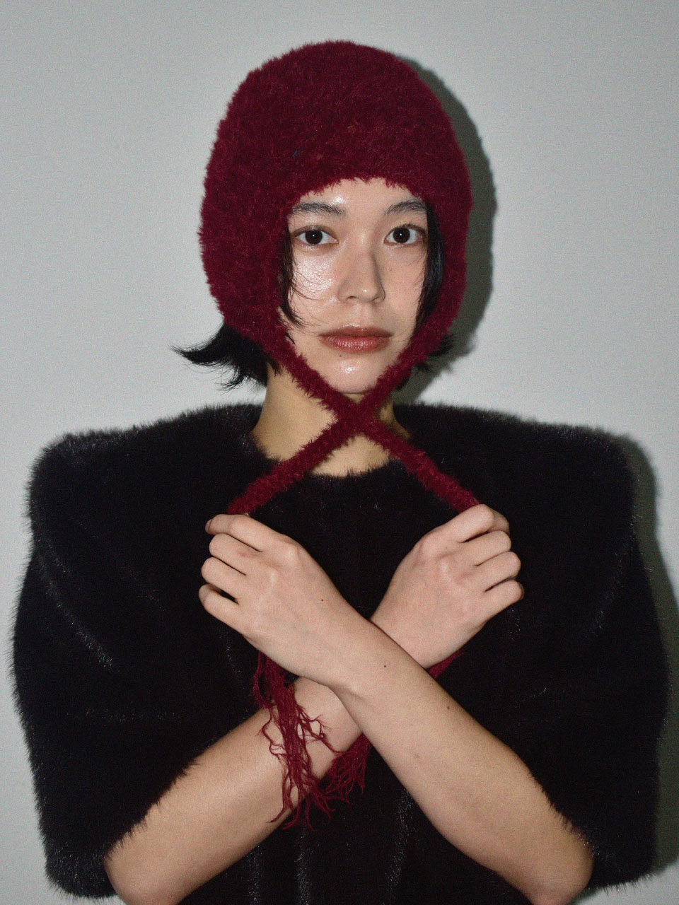 HANDMADE KNIT Wool Hat_BURGUNDY