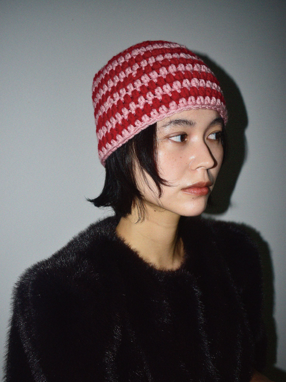 HANDMADE KNIT Wool Hat_RED PINK