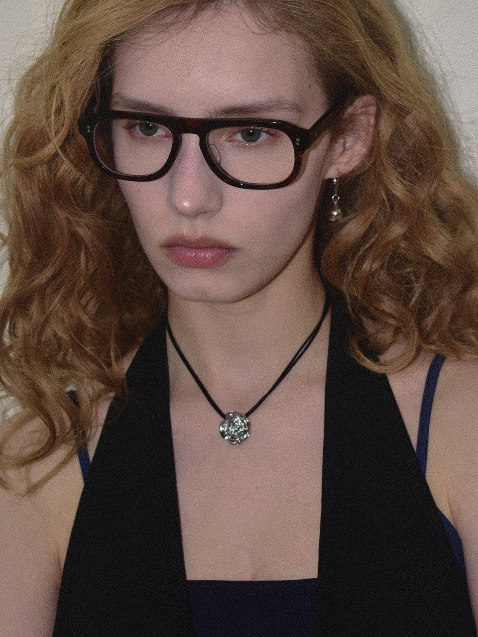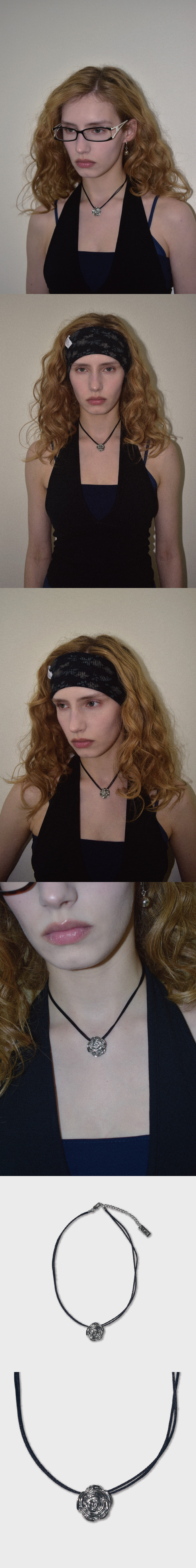 슬림한 코드 스트랩과 로즈 모티브 팬던트가 어우러진 핸드메이드 네크리스입니다.