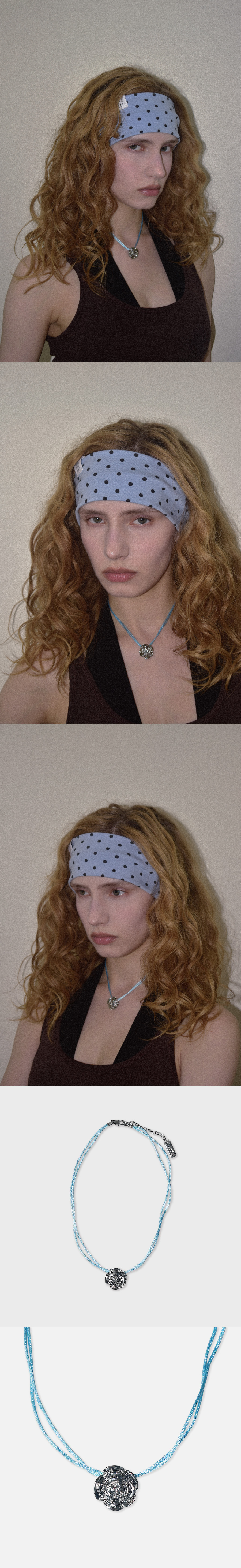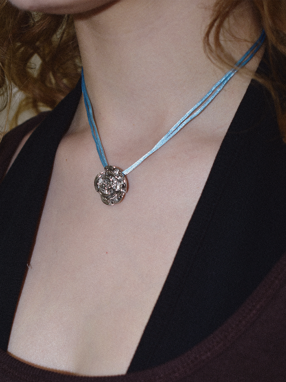 슬림한 코드 스트랩과 로즈 모티브 팬던트가 어우러진 핸드메이드 네크리스입니다.